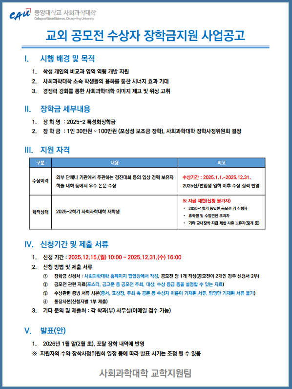 [안내] 2025-2 교외 공모전 수상자 장학금지원 사업 공고